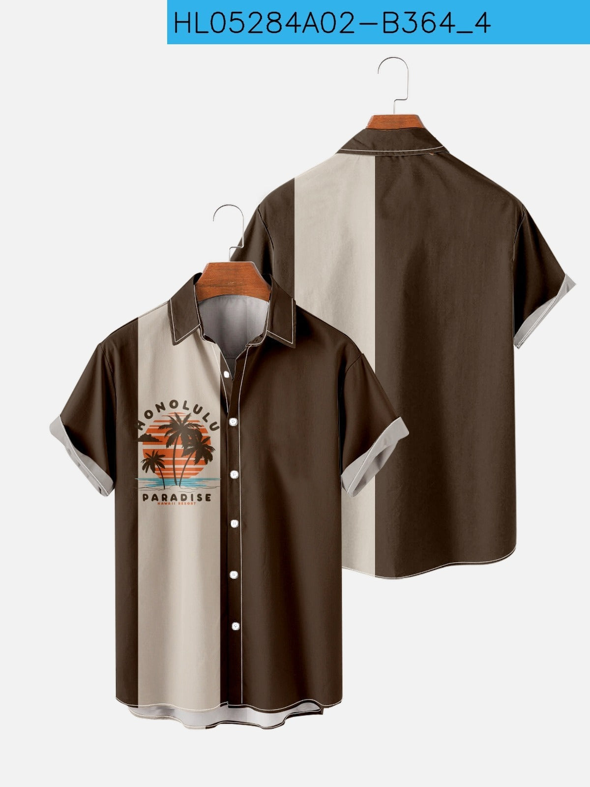 Men's Striped Dinosaur Print Shirt – Short Sleeve Casual Cardigan Style